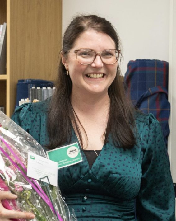 She has a keen interest in textile history, loves to collect vintage fabrics and haberdashery and is currently obsessed with fibre and fibre processing.